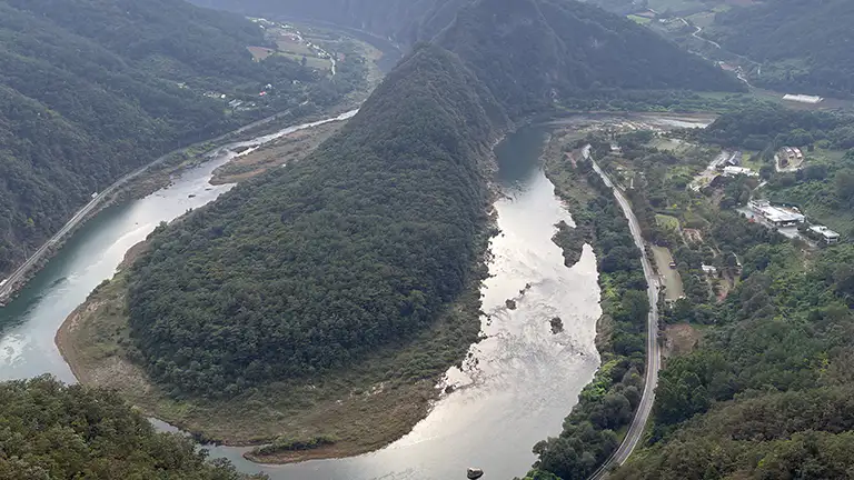 감입곡류란 하천이 흐르는 지역이 융기되거나 하천이 계속 아래를 깎으면서 흐를 때 자유로운 방향으로 구불구불한 형태를 보이면서 아래를 깊게 파서 만들어진 하천을 말한다.