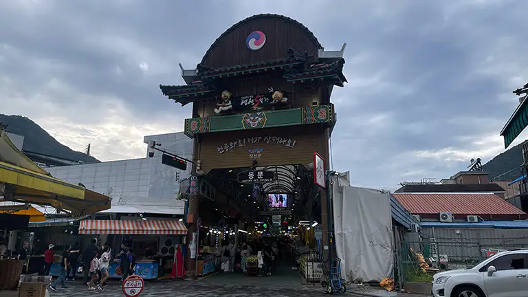 횡단보도를 건너면 정선 아라리 시장 (정선 5일장)으로 가는 입구에 들어선다.